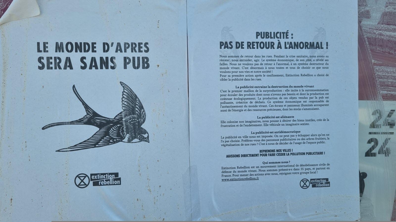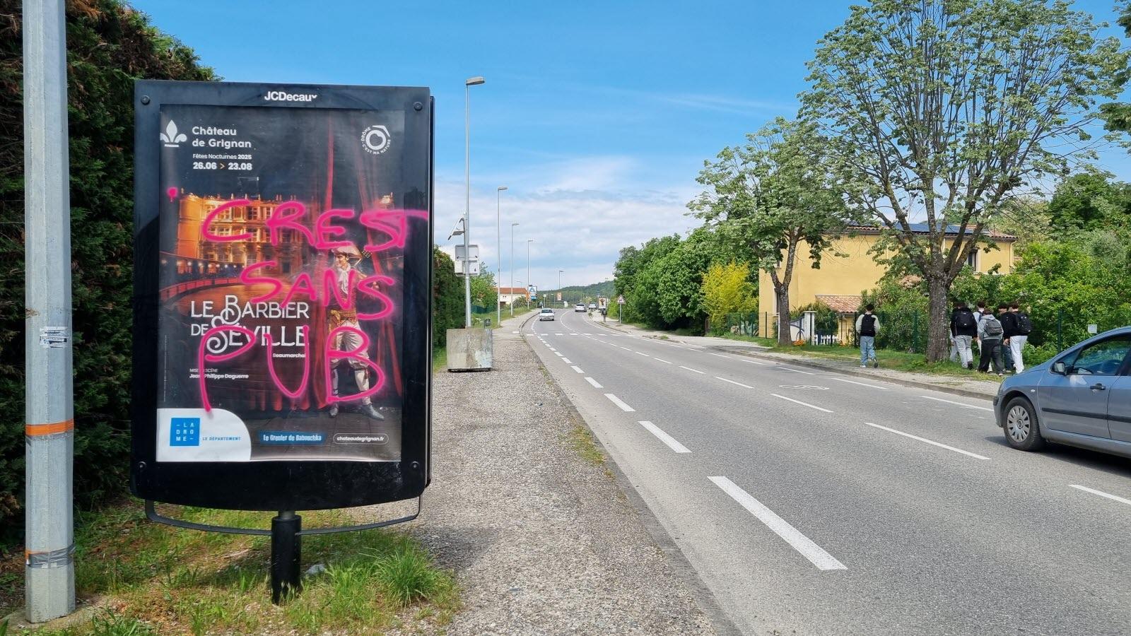 De nouvelles dégradations ont touché la ville de Crest et plus particulièrement les panneaux publicitaires. Extinction Rebellion (XR), qui se présente comme un mouvement de désobéissance civile, a collé sur plusieurs d’entre eux, avenues Félix-Rozier et Charles-Armorin, des affiches expliquant leur démarche antipub.