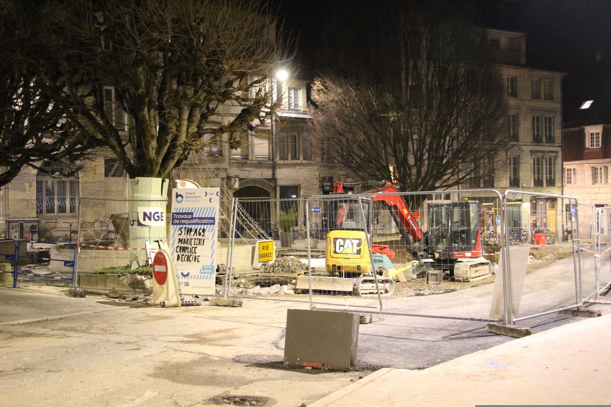 Je me promenais à Besançon, Place Marulaz, et j’ai vu des décorations sur le matériel de l’entreprise NGE chargée des travaux un peu partout dans la ville.