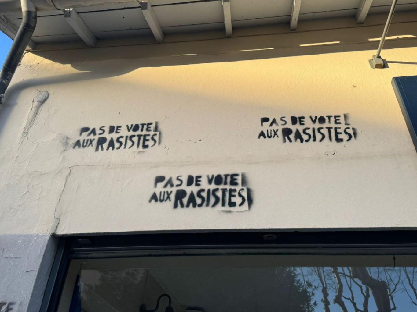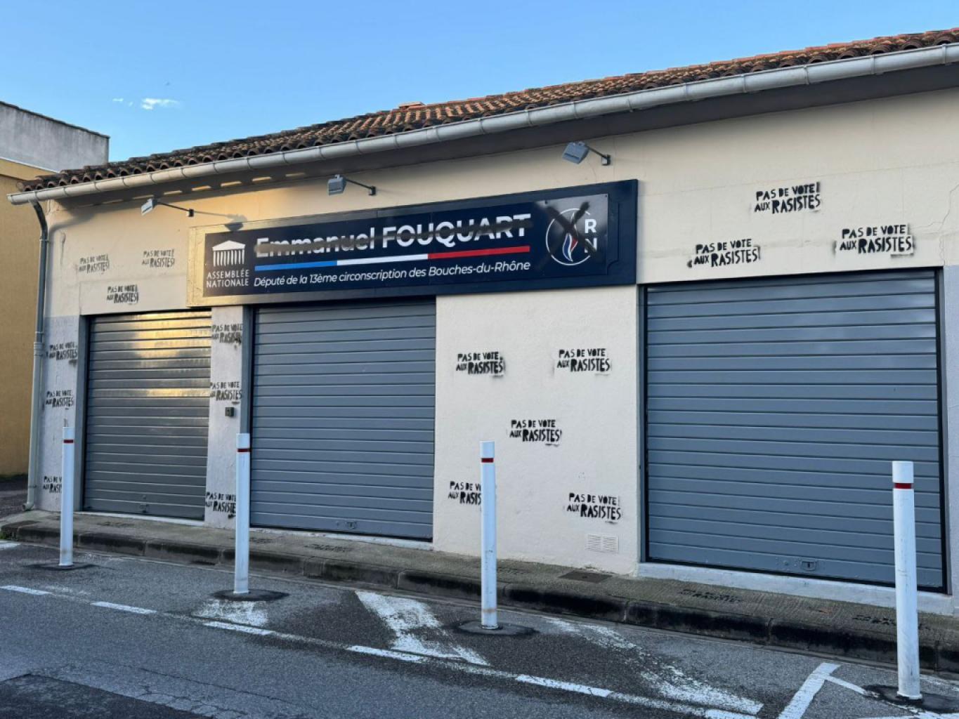 Pas moins de 23 inscriptions « Pas de vote aux rasistes » (sic) ont été peintes sur les façades des bureaux locaux du député et candidat aux élections municipales de mars à Martigues.